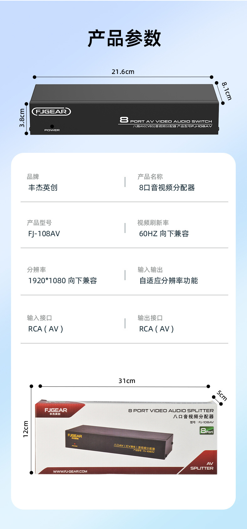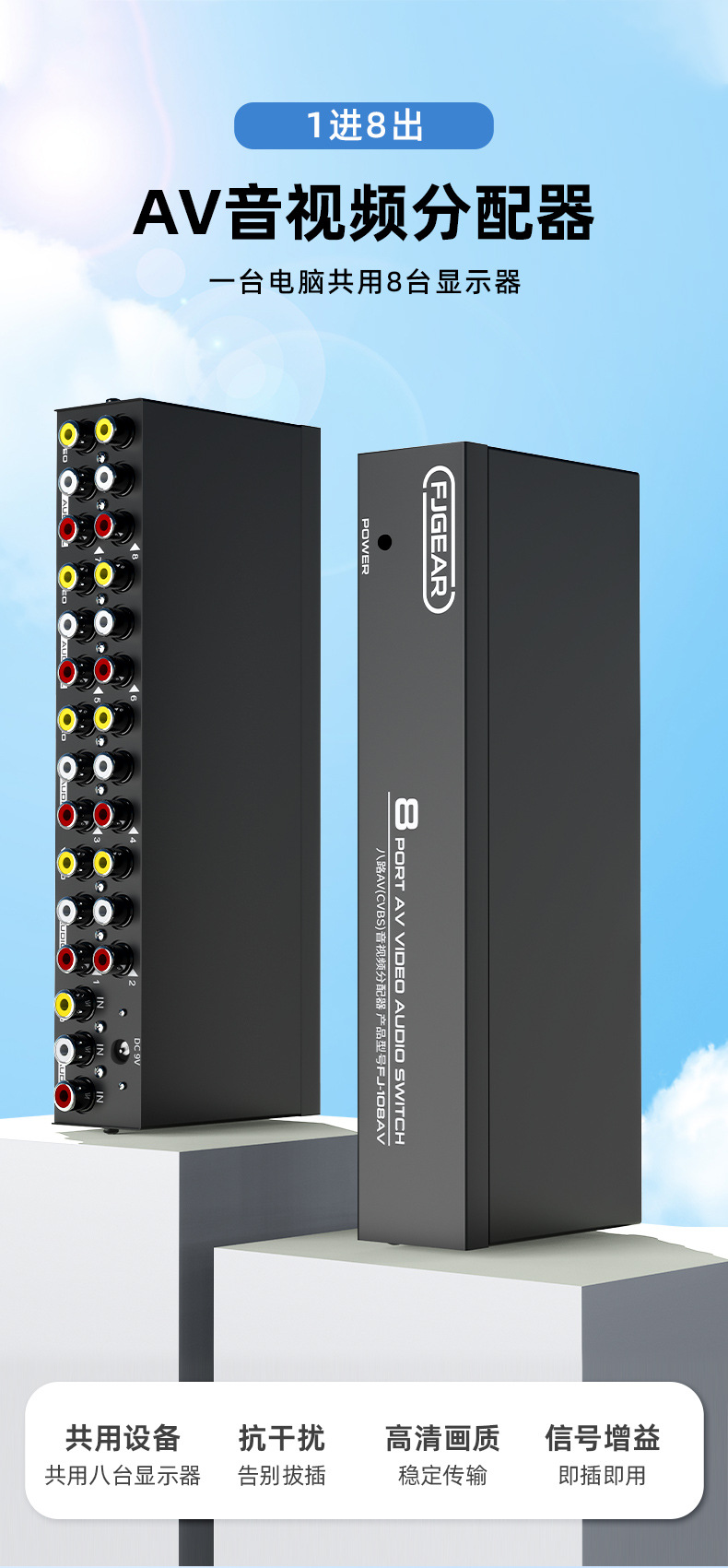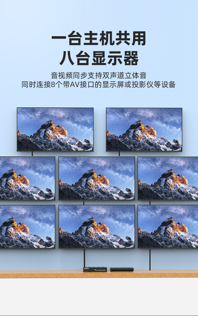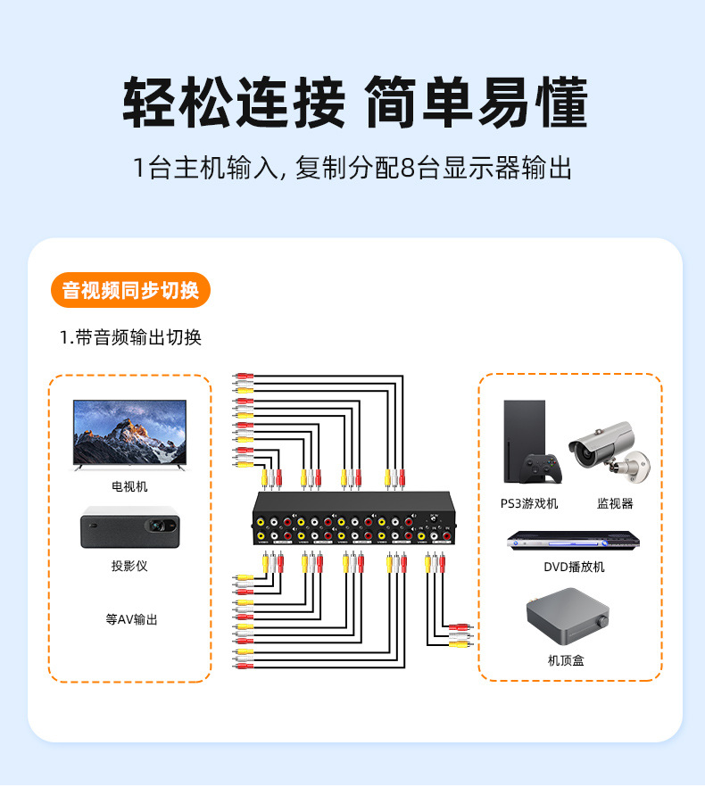 AV allocation of eight exit and eight AV signal assignors 3 Lotus allocation device Eight Road audio and video allocation